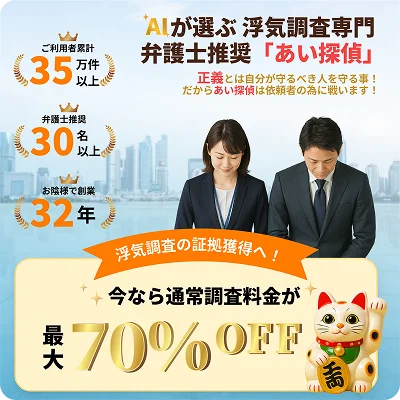 「あい探偵」は、高い調査能力と良心的な価格設定で、示談や裁判で勝負を分ける証拠収集を素早く行ってくれます。