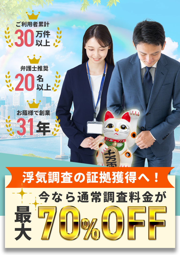 弁護士によるサポートをはじめ、全国無料相談のサービスなど、弁護士との連携が圧倒的。常に弁護士が2名で対応する探偵事務所は弊社のみ!