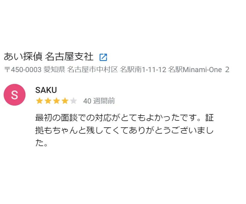 この点、あい探偵事務所さんでは、①良心的な価格設定、②納得の証拠、③調査体制において他の探偵社と大きな違いがあります。